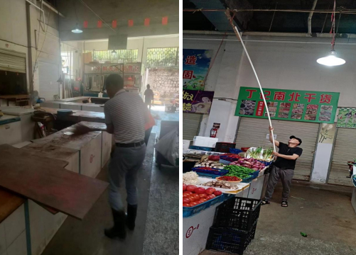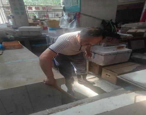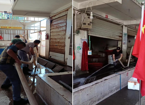 ↑↑↑清理市場(chǎng)水產(chǎn)區(qū)和光禽區(qū)的內(nèi)部地面和排水溝