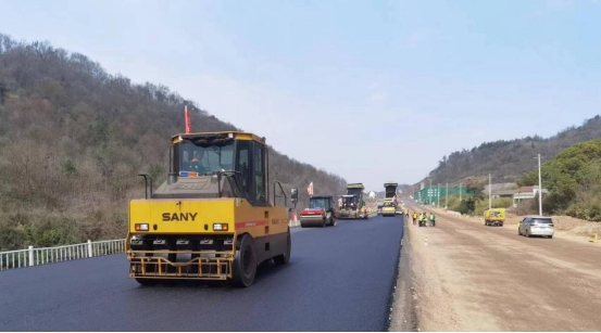 3月7日上午,在G330一期錢鋪段路面上,數臺攤鋪機和壓路機正在進行瀝青攤鋪和路面平整工作,經過工人們數個小時的連續(xù)奮戰(zhàn),順利完成試驗段瀝青下面層鋪筑任務,意味著G330銅陵段一級公路改建工程(一期)正式進入瀝青路面施工階段。