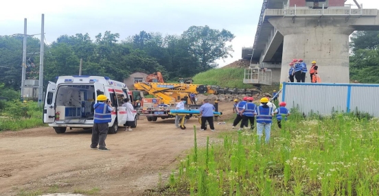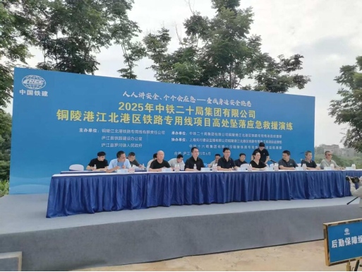 為筑牢鐵路施工安全防線,切實(shí)提升突發(fā)事故應(yīng)急處置能力,6月25日下午,江北港鐵路專用線公司攜手廬江縣鐵路建設(shè)辦公室、羅河鎮(zhèn)人民政府,于江北港鐵路專用線項(xiàng)目跨合銅高速公路特大橋1#墩附近,聯(lián)合主辦了一場(chǎng)緊張有序的T梁架設(shè)高處墜落事故應(yīng)急演練。此次演練由中鐵二十局集團(tuán)有限公司銅陵港江北港區(qū)鐵路專用線項(xiàng)目經(jīng)理部承辦。