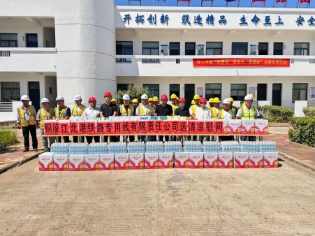 近日,烈日炙烤著大地,熱浪席卷了銅陵江北港鐵路專用線項目的每一個角落。奮戰(zhàn)在項目一線的建設者們頂烈日、戰(zhàn)高溫,正面臨著嚴峻“烤”驗。為切實做好高溫天氣下的防暑降溫工作,保障項目建設者的身心健康與生命安全,7月24日上午,銅陵江北港鐵路專用線公司董事長、總經(jīng)理張葉來,副總經(jīng)理祖江陽分別帶隊,奔赴二十局泥河制梁場、江蘇雷威項目經(jīng)理部、十六局項目經(jīng)理部,開展一場暖心的“夏送清涼”活動。