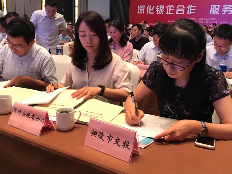 8月9日上午,全省銀企對(duì)接會(huì)在合肥召開。公司黨工委委員、副總經(jīng)理范美霞代表公司參加會(huì)議并與國(guó)開行安徽省分行簽訂G3銅陵長(zhǎng)江公鐵大橋項(xiàng)目意向書。