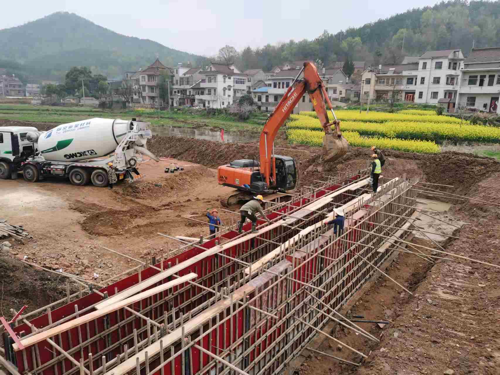 江北港鐵路專用線項目隧道正洞開挖110米,開累2070米,仰拱33米,開累1658米,二襯57米,橋梁承臺完成14個,橋梁墩身完成3個,墩帽及托盤3個,路基挖方11000方,填筑約4500方。