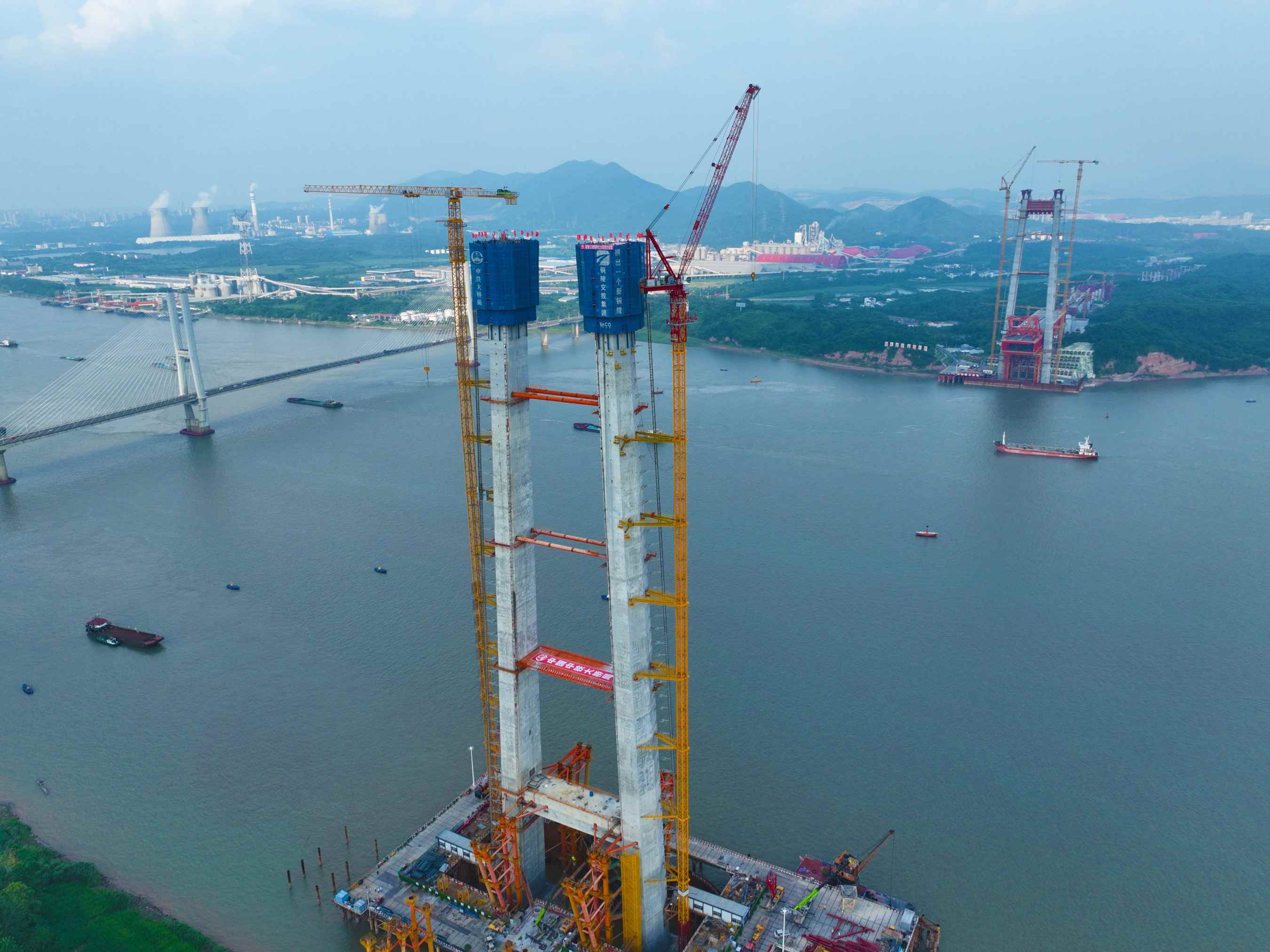 8月18日,由銅陵市交投集團(tuán)投資建設(shè)、中鐵大橋院設(shè)計(jì)、中鐵大橋局承建的世界首座雙層斜拉-懸索協(xié)作體系大橋——G3銅陵長(zhǎng)江公鐵大橋北岸3號(hào)主塔順利封頂,至此,大橋南北兩座主塔全部封頂,施工取得重大進(jìn)展,大橋?qū)⑷孢M(jìn)入鋼梁架設(shè)階段。