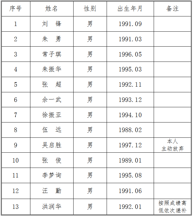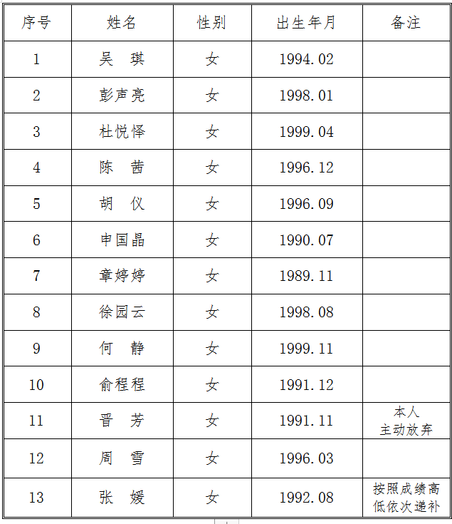 現(xiàn)將交投集團(tuán)司屬公司銅陵市江北公路管理有限責(zé)任公司收費(fèi)員、監(jiān)控員崗位招聘體檢入圍人員名單公示如下: