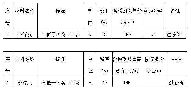 ? 1、“銅陵通馳商貿(mào)有限公司粉煤灰供應(yīng)商”(項(xiàng)目編號:TCG22061)招標(biāo)文件中招標(biāo)最高限價(jià)表、投標(biāo)報(bào)價(jià)表分別修改后如下: