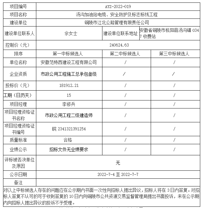 建設(shè)單位聯(lián)系地址:安徽省銅陵市樅陽縣湯溝鎮(zhèn)G347收費站