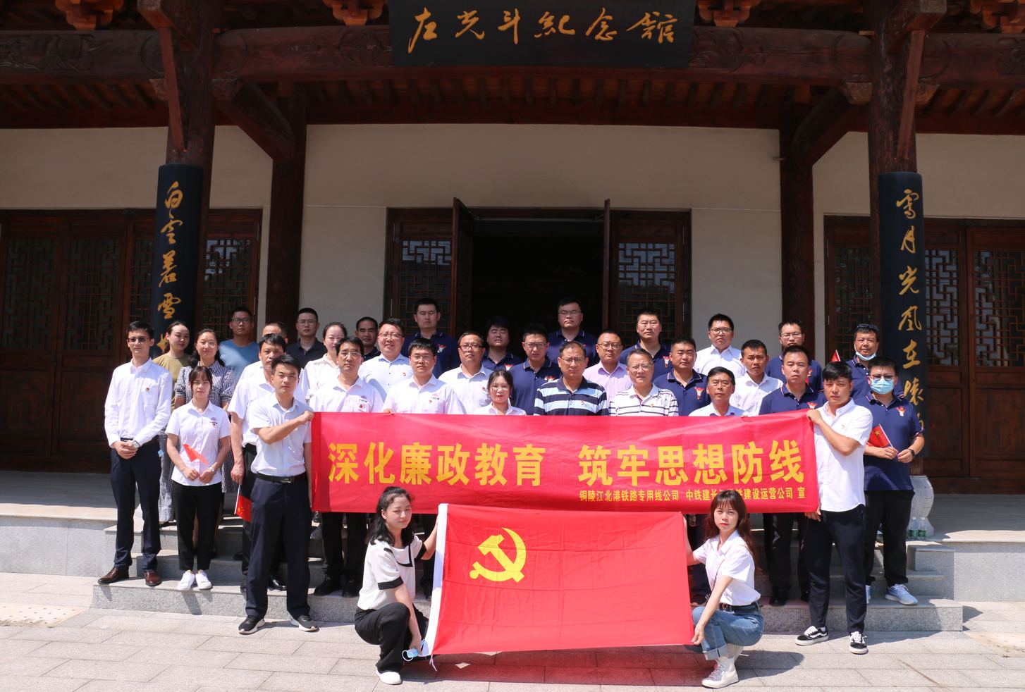 為切實加強黨風(fēng)廉政建設(shè)和反腐敗斗爭,落實新一輪黨風(fēng)廉政風(fēng)險防控工作,進(jìn)一步提升黨員干部職工的拒腐防變能力,6月16日上午,江北港鐵路專用線公司黨支部聯(lián)合項目施工單位黨支部,組織黨員干部職工到橫埠鎮(zhèn)橫山村左光斗紀(jì)念館參觀學(xué)習(xí),現(xiàn)場接受廉潔廉政教育。