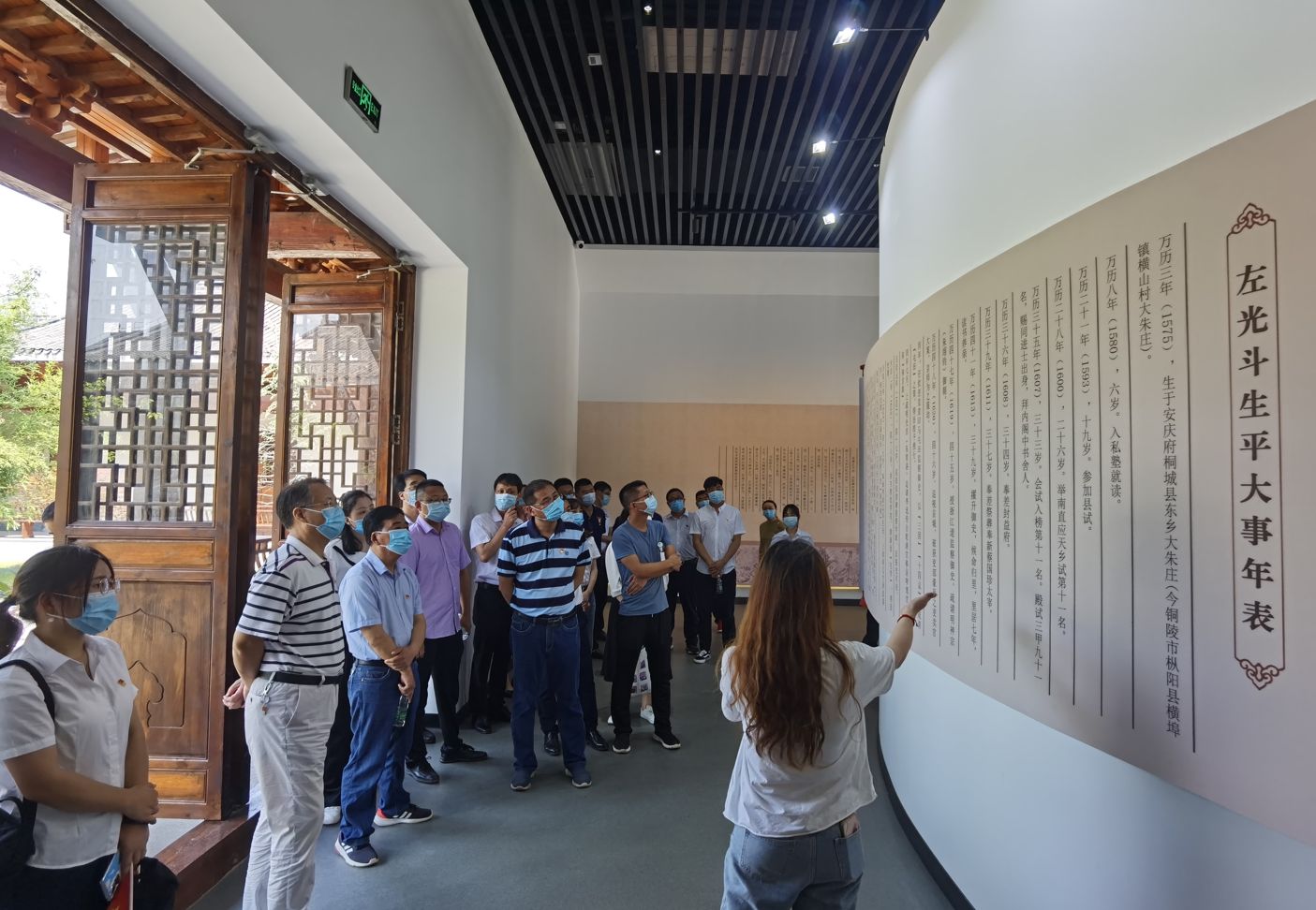 在工作人員的引導(dǎo)下,大家相繼參觀了門廳、乾坤正氣堂、主展館、電子館等展廳?,F(xiàn)場觀摩館內(nèi)展出的書畫、典籍、琴劍、印章等史料及文物。通過工作人員的現(xiàn)場解說,在場的黨員如身臨其境,通過這種沉浸式體驗切身感受到了左光斗以清廉立身、以恤民為本、以國家為懷的“鐵骨御史”形象。