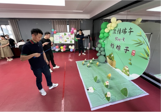在游戲活動(dòng)現(xiàn)場(chǎng),充滿節(jié)日氣氛的裝飾映入眼簾,彩色的氣球、精美的展板,還有各式花樣的粽子、釣竿等道具,職工們紛紛揮動(dòng)釣竿,試圖將掛有粽子的釣線準(zhǔn)確地投入預(yù)設(shè)的“粽子池”中。一時(shí)間,現(xiàn)場(chǎng)歡聲笑語(yǔ)、熱鬧非凡。