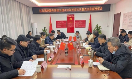 2月14日上午,江北港鐵路專用線項目(銅陵段)2023年度首次質(zhì)量安全監(jiān)督檢查部署會議在項目公司一樓會議室召開,銅陵市鐵路辦副主任王濱主持會議。市交投集團公司總工程師,江北港鐵路公司董事長、總經(jīng)理張葉來,上海建科監(jiān)督檢查組及項目施工、設(shè)計、監(jiān)理單位負責(zé)人等參加會議。會上,就本次監(jiān)督檢查工作進行了詳細布置,明確了督查重點。